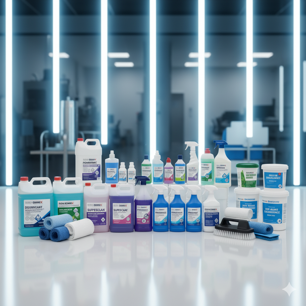 These products are formulated for high-traffic, large-scale, and regulated environments like Hospitals, Offices, Factories, and Commercial Establishments, focusing on efficacy, safety, and operational efficiency
